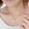 キラキラと細やかな輝きを放つゴールドカラーのミルフレームが上品に胸元を飾るイニシャルネックレス。主張しすぎることのない程よいサイズのコインに刻まれた頭文字と、丁寧なテクスチャ仕上げのデザインが妻・彼女へのプレゼントに人気の誕生石チャーム付イニシャル「S」ネックレス。